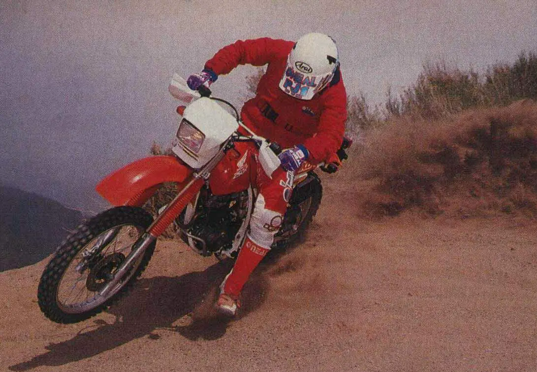 Como la mayoría de ustedes, no podíamos esperar para montar el nuevo Honda, pero le pedimos a la superpotencia que se detuviera hasta que hiciéramos todas las preguntas que pensábamos que teníamos de la gente de Honda, excepto las que decían: “¿Puedo tener un CR250 para mi del hermano”. y “¿Puedo llamar a Roger DeCoster desde el teléfono de tu auto?” Las respuestas son las siguientes: el motor XRL es muy similar al motor XR: mismo tirante, leva, culata, pistón, diámetro interior, carrera, válvulas y filtro de aire. Eso sí, sin enfriador de aceite. La caja de aire es la misma unidad de gran capacidad que se encuentra en un XR pero para un snorkel con sonido reducido en la parte superior de la caja de aire. Un pequeño tanque de emisiones se ha evaporado en el sistema de combustible. El sistema de escape utiliza una cabeza de tubería de acero inoxidable y un silenciador similar al XR pero sin el silenciador y el reductor extraíbles del XR. Las relaciones de transmisión son las mismas que las relaciones XR, aunque el apalancamiento final es ligeramente más alto y se utiliza una cadena de juntas tóricas 428 en lugar de la unidad de juntas tóricas 520 más robusta de la XR.