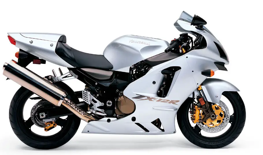 La corona de la “motocicleta más rápida” estuvo en manos de Kawasaki con su ZZ-R1100 durante mucho tiempo, hasta que la Honda Blackbird y la Suzuki Hayabusa avanzaron en la clase. La Ninja ZX-12R fue la respuesta de Kawasaki. Diseño completamente nuevo, utiliza un marco monocasco único, junto con un motor de 142kW (190bhp), el más potente hasta 2005. El chasis está orientado a la velocidad: el marco es más estrecho que un diseño de doble viga y alberga la caja de aire y batería, ahorrando así espacio en otros lugares. El casco aerodinámico es un enorme alcance de ram air, con enormes espejos, pequeñas alas canarias en la parte inferior de la feria y gatos fundidos en las horquillas de la ZX-12R a una velocidad máxima de 299 km/h (186 mph). También es más deportivo que el Hayabusa o el Blackbird.