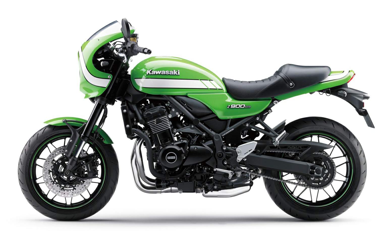 Además de la Z900RS estándar, la Z900RS CAFE está equipada con algunas características exclusivas, como el capó frontal Racer Cafe en motos con el exclusivo esquema de color Vintage Lime Green.