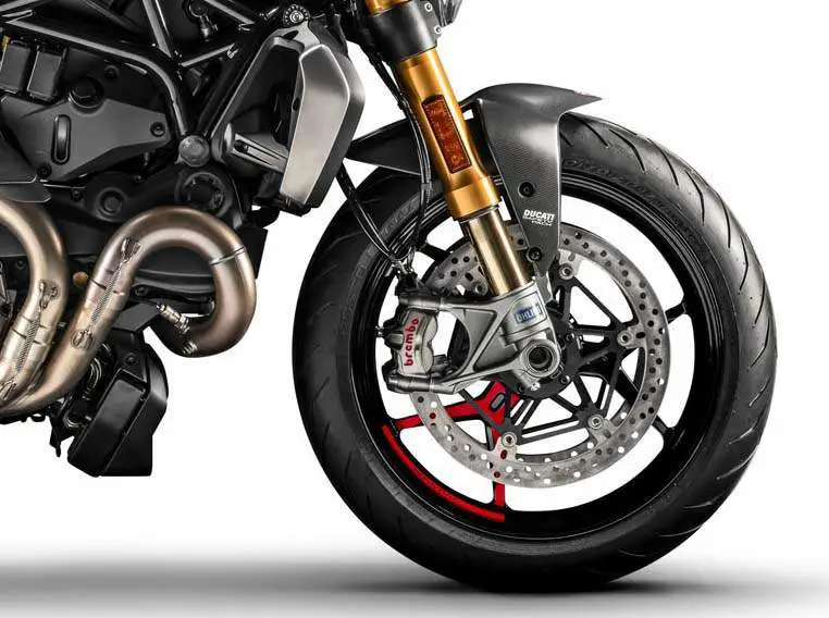La exclusiva Monster 1200 S agudiza el rendimiento deportivo de Monster hasta un punto aún más fino gracias a una horquilla Öhlins de 48 mm y un monoamortiguador trasero Öhlins, ambos totalmente ajustables. Dos discos Brembo proporcionan 330 mm en la parte delantera con un gran frenado mientras trabajan en conjunto con las pinzas monobloque Brembo M50. Además, la Monster 1200 S cuenta con tres ruedas de radios en Y con gráficos exclusivos “S” y un guardabarros delantero de carbono, mientras que el faro delantero se caracteriza por el sistema DRL (Daytime Running Light) y los indicadores LED, no de tipo bombilla.