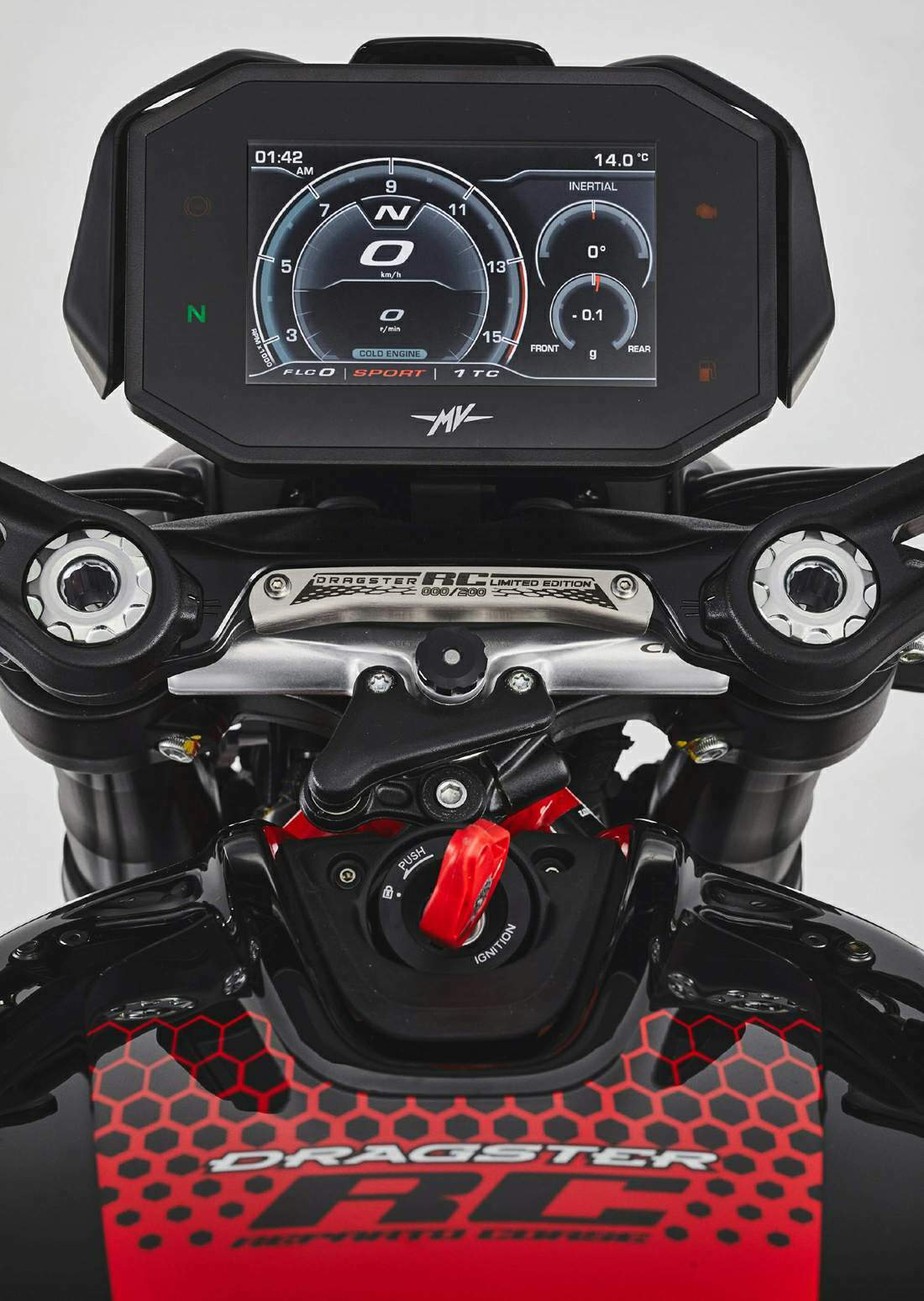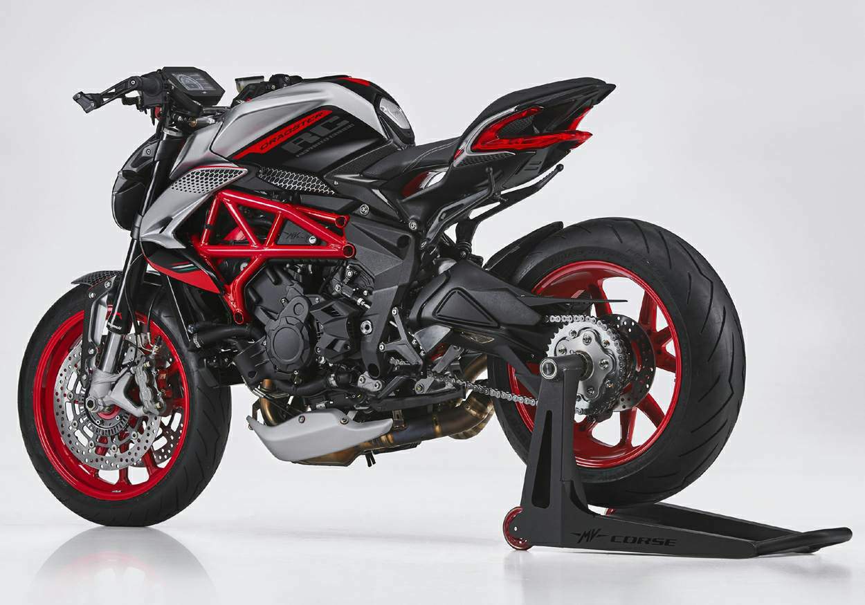 Exclusivo y distintivo, Dragster RC SCS se destaca con sus esquemas de color y gráficos en mente para equipos de Moto2 y Supersport. Las ruedas forjadas reducen significativamente el peso no suspendido, elevando el nivel de agilidad, que ya es el mejor de su clase gracias al motor con manivela antirrotación. Se utiliza carbono de alta calidad para algunos de los elementos estéticos, como los guardabarros delanteros, los paneles laterales del depósito de combustible y el guardabarros trasero. Dragster RC SCS lleva el rendimiento del motor de tres pistones 800 hasta el final, gracias al dispositivo de carreras opcional que incorpora el escape Project SC y el mapeo optimizado. Solo estarán disponibles 200 unidades Dragster RC SCS numeradas y certificadas.