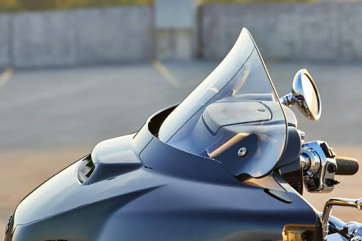 El parabrisas eléctrico con botón pulsador le permite cambiar fácilmente la altura. Las rejillas de ventilación inferiores del carenado gestionan el flujo de aire para una comodidad óptima del conductor y del pasajero.