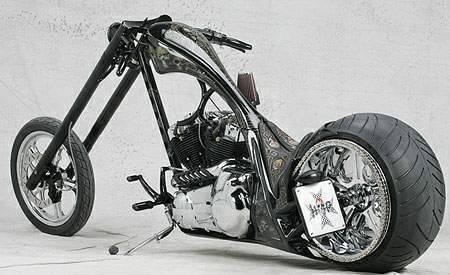 Caligo de Alemania muestra Habermann Performance. El Caligo Avon 300 basado en RevTech Creep Custom Chrom 11.5 x 18 pulgadas 11.5 x 18 pulgadas con Habermann -Performance Proof Spinner. Bianca Hennig hizo el complejo trabajo de aerógrafo por Bianca Hennig. Un faro W&W Co-creador Thomas Habermann describe la central eléctrica de S&S de 92 pulgadas cúbicas como “Knovelhead” gracias a su estilo de cabeza de pala con balancines de cabeza hueca. El motivo del cráneo es abundante y el co-creador Dany Habermann tiene la idea. Fue responsable de la temática, pintura y gráfica de Caligo. Una audaz transmisión final de 95 dientes proviene del interior de la carrocería. Una rueda dentada antieje está oculta a la vista.