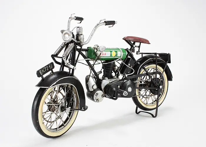 En lugar de ocultarlo, BSA pintó el tanque de color verde brillante y lo decoró con paneles, líneas y logotipos. Y es el tanque que le dio al Model B el nombre de retrovisor.
