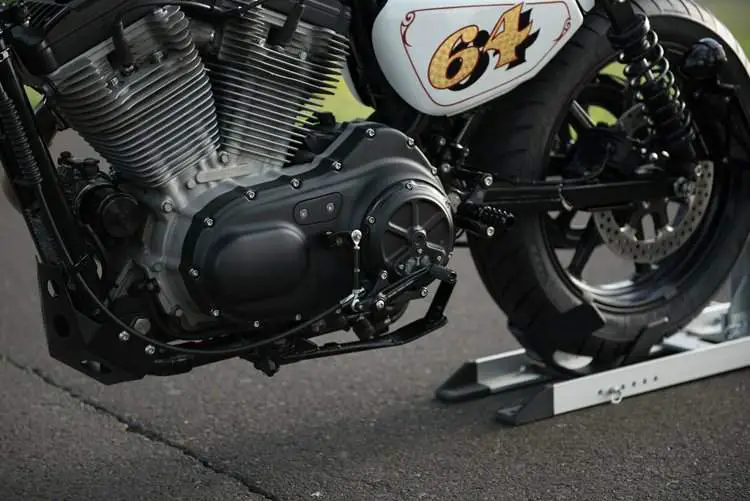 Las piezas utilizadas incluyeron RSD Sportster Rearsets, RSD Slant Slant 2-in-1 Exhaust, RSD Cafe Tail Section y Single Seat, RSD Wheels Morris, Legacy Drag Specialties Tank, Legend Revo Shocks, kit de horquilla monotubo progresiva, kit de carburador S&S Super E, Dakota Digital Series 3200 Speedo / Tacho, Speed Buyer Slip Plate, Biltwell Recoil Grips.
