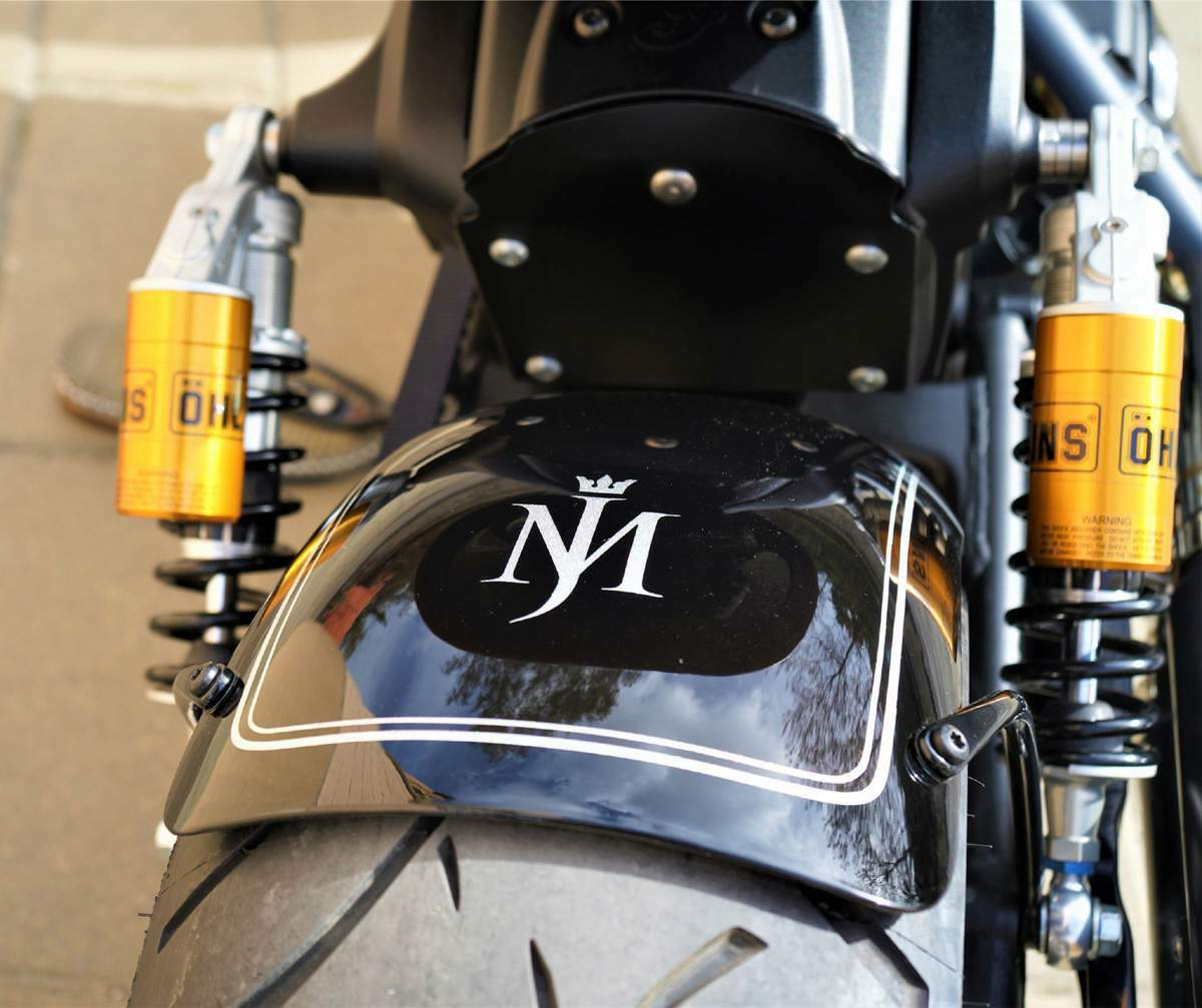 El pequeño mini-petition colgante del manillar y los amortiguadores Ohlins para Scouts of India aportaron otro toque importante a esta moto custom… nuevo faro LED, puños y protectores etc etc. Por último, para hacerlo más cómodo, se ha añadido un dispositivo para ralentizar el pin del pie del conductor, que es específico de los modelos Scout de la marca india. El proyecto de customización de motos se fue modificando poco a poco para hacer algo más que montar 240 neumáticos traseros en una moto Indian y cambiar casi toda la moto; que rindió tributo al “Rey de los Papas”… Michael Jackson que es fan del dueño de esta Indian Scout personalizada…. la palabra “MALO” o un logo con la silueta del famoso cantante.