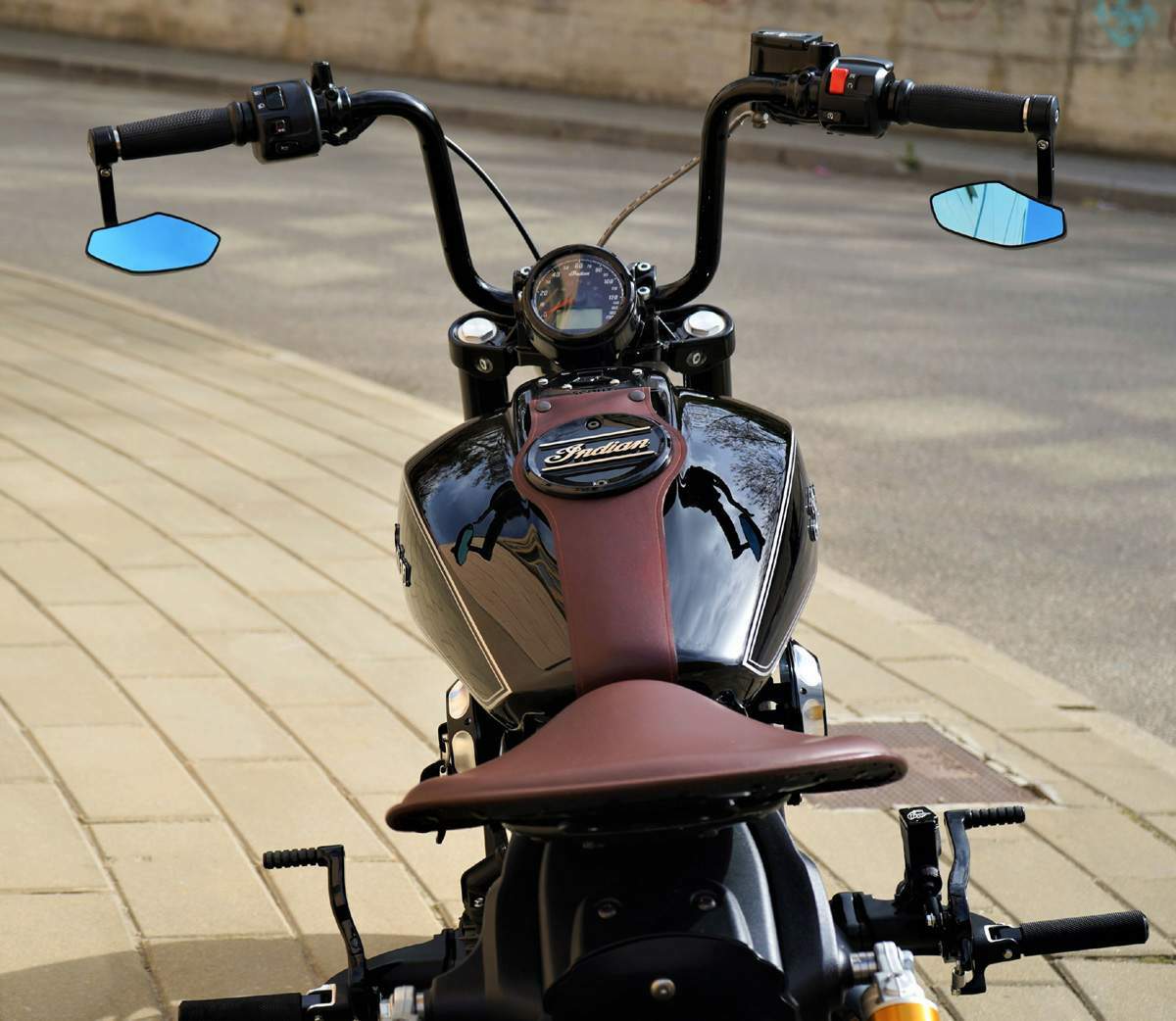 Al principio, el dueño de esta moto custom tenía una opinión completamente diferente de lo que hacíamos en esta Scout transformada en estilo bobber en nuestro taller especializado en modificaciones a motos Indian… “Lo único que queda de la idea original, es la instalación de un Dispositivo neumático trasero de 240 pulgadas (que nos cuenta el propio Francisco Ali Manén, propietario de Lord Drake Kustoms). Un brutal juego de llantas de RC Components (la trasera es de 240) y un único asiento colgante combinado con un guardabarros trasero customizado de Indian bobber y el guardabarros delantero recortado han marcado el estilo de la transformación más pura de una moto bobber.