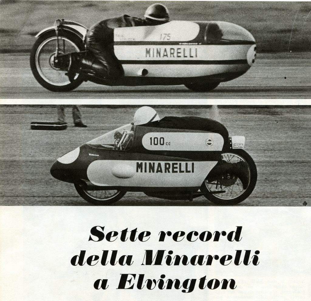 En 1966, Minarelli fue a Gran Bretaña para la famosa semana de récords que se celebra todos los años en Elvington. El piloto y diseñador-mecánico Arteno Venturi no tuvo problemas para establecer cuatro récords mundiales