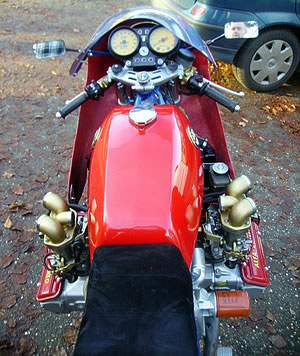 Los motores Alfa Romeo deben haber sido un trasplante más común de lo que pensaba. Aquí hay otra motocicleta que parece bastante terminada y lista para andar. El motor es un Alfa Romeo Boxer de 4 cilindros pero no puedo decirte mucho más. Las fotos fueron tomadas en Bélgica y las imágenes tienen algunas notas. Por lo que puedo decir, el tanque es de Laverda, algunos cascos son de Yamaha 750 y la moto se ve muy bien.