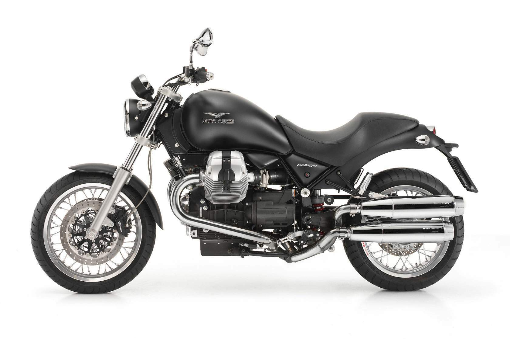 Bellagio, la Moto Guzzi, la que más tiene en común con las custom americanas, conserva muchas de las características de la marca águila: el motor de carrera corta de 940 cc, las bujías dobles, el CA. Transmisión RC (‘Cardano Reattivo Compatto’ – eje de tarjeta reactiva compacta) y caja de cambios de seis velocidades. Estas características, hábilmente complementadas con el excelente diseño del chasis, hacen de la Bellagio la moto más deportiva de su parte, ofreciendo una experiencia de conducción comparable a la de la moto desnuda.