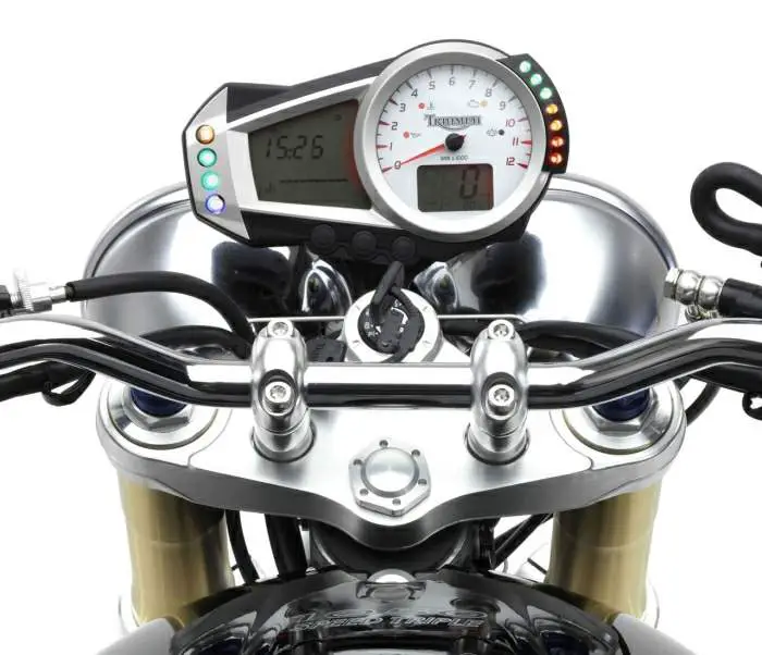 El nuevo estilo limpia los dispositivos de señal y el motor, dando a la moto un nuevo giro en el viejo tema punk. Claramente sigue siendo un Speed Triple (¡algunos faros, por supuesto!), Incluso con su nueva cola acoplada, llantas de cinco radios y algunos escapes perturbados y silenciadores inoxidables.